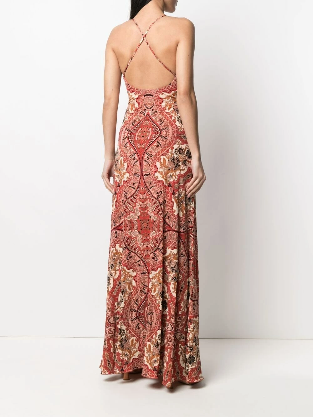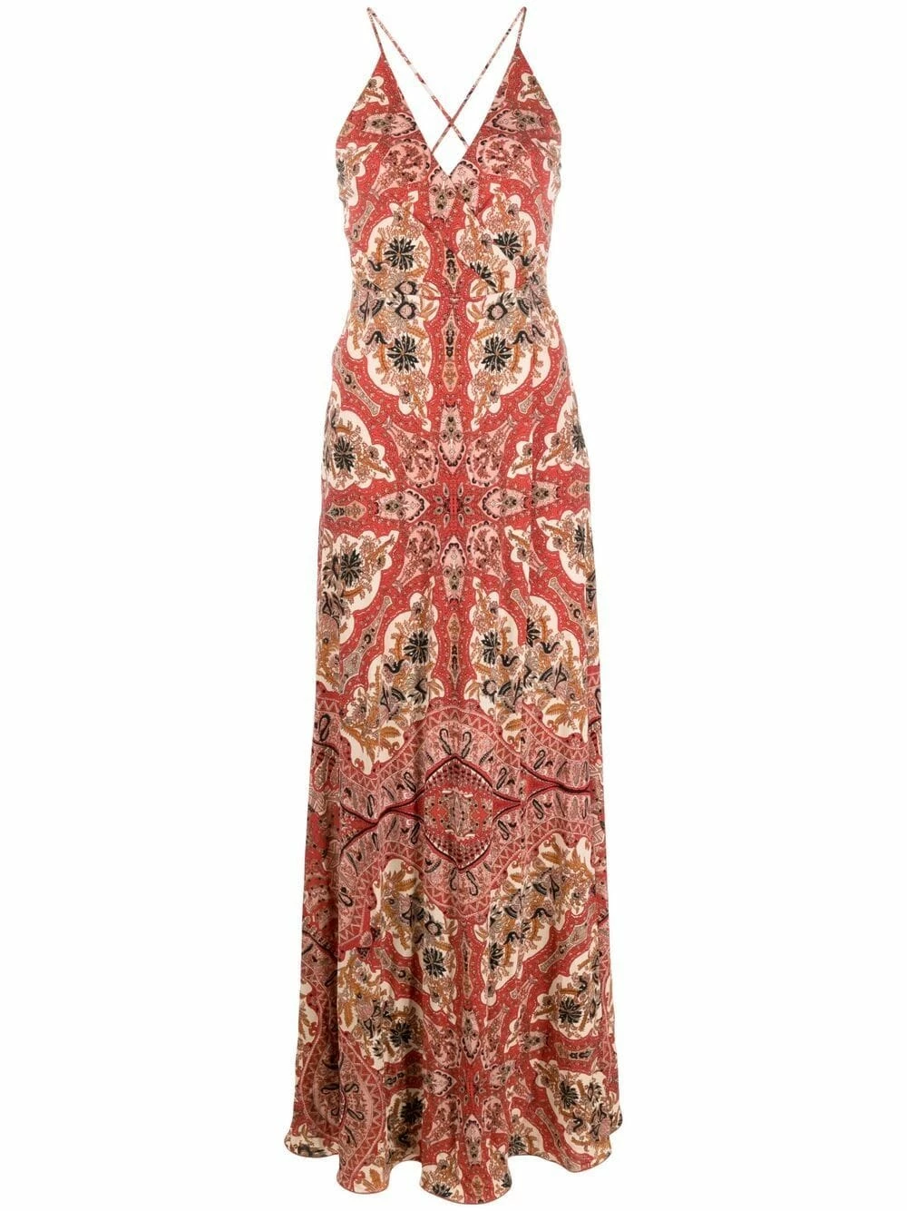 Motif cachemire, col v, design sans manches, coupe longue.