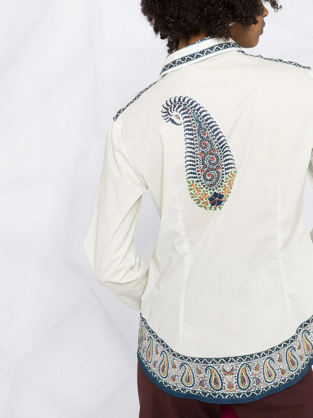 Motif cachemire, col classique, boutonnière sur le devant, manches longues, poignets boutonnés, ourlet incurvé.