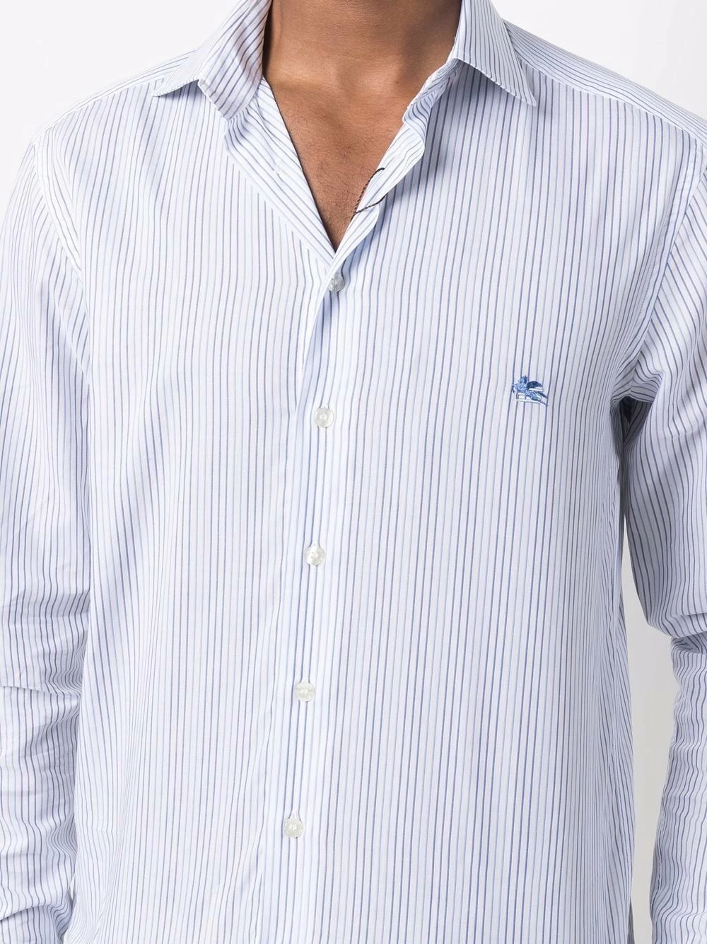 Rayures verticales imprimées, col classique, boutonnière sur le devant, manches longues, ourlet incurvé. Matière : coton.