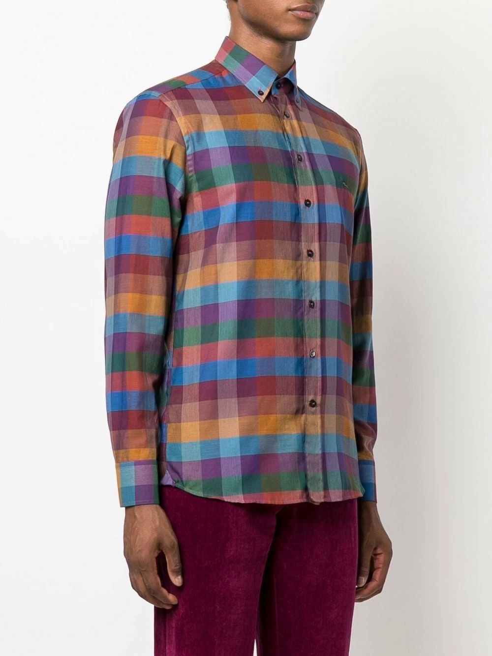 Carreaux, col classique, boutonnière sur le devant, manches longues, poignets boutonnés, ourlet incurvé. Matière : coton.