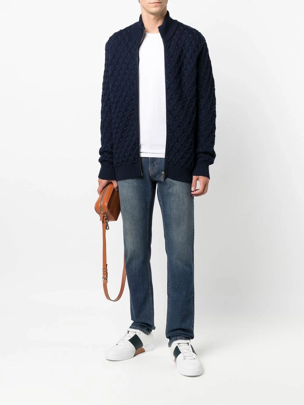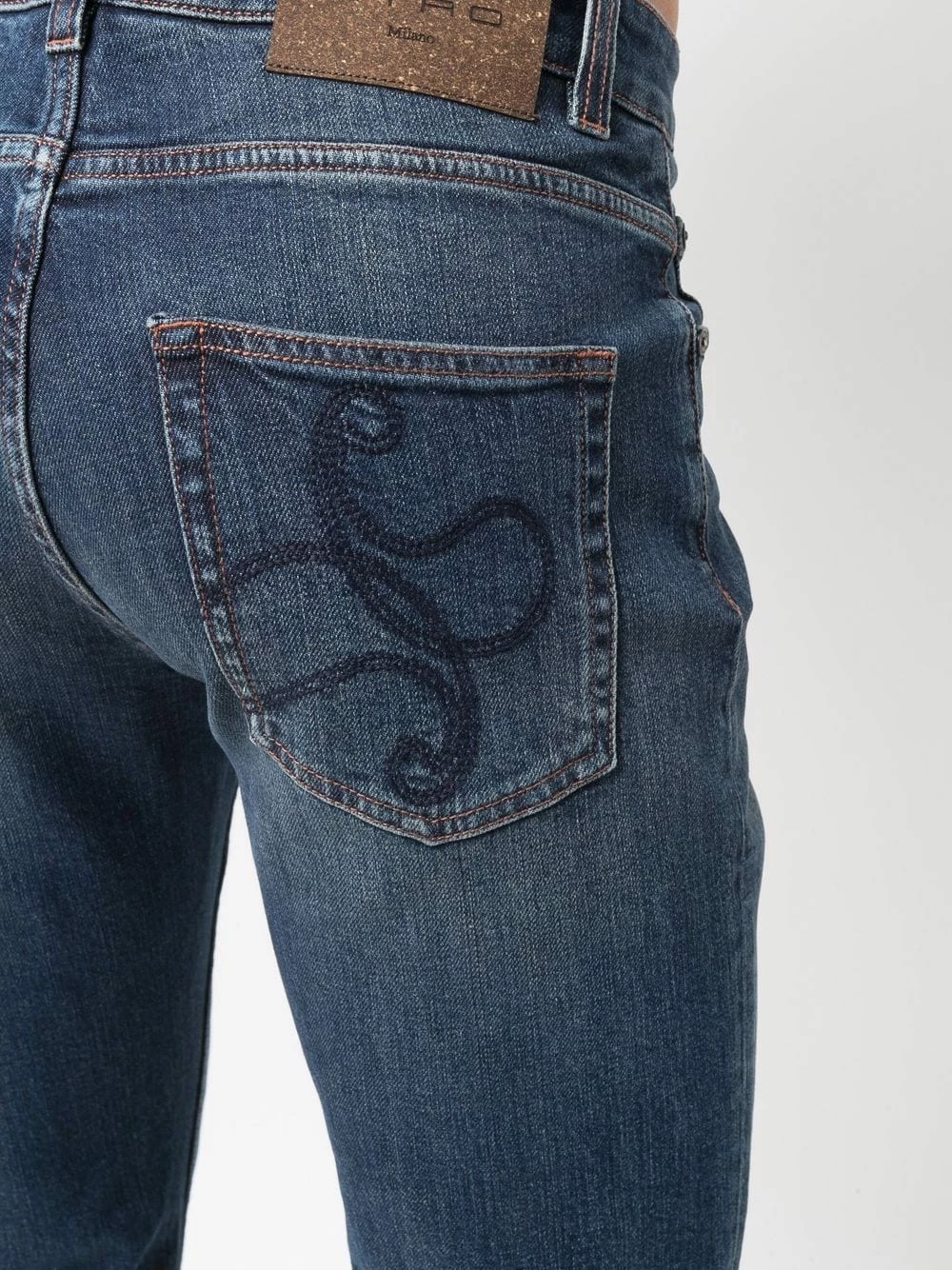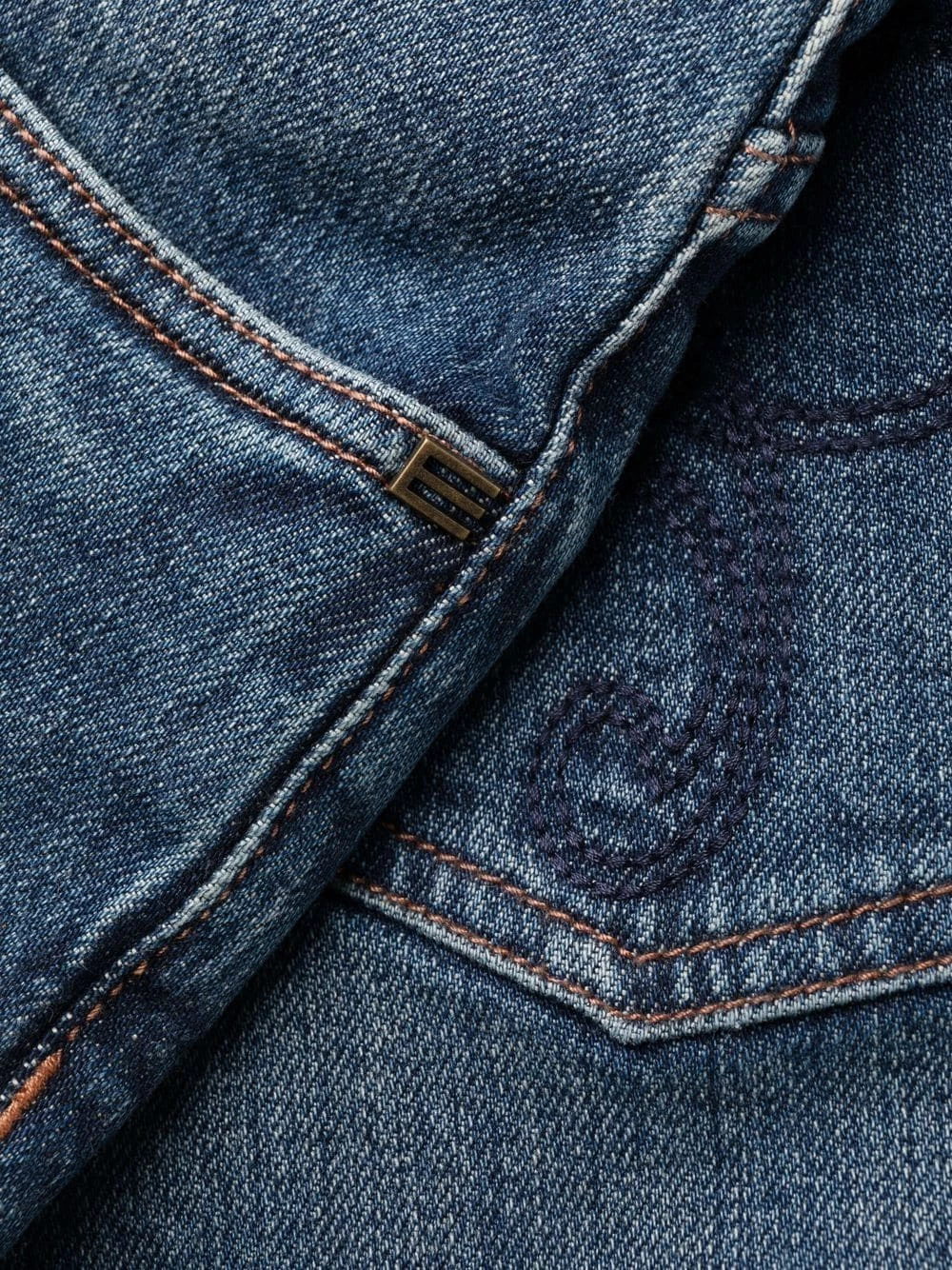 Effet délavé, broderies, patch logo sur l’arrière, passants de ceinture, fermeture à zip et boutons sur le devant, cinq poches classiques. Couleur : bleu. Matière : coton.
