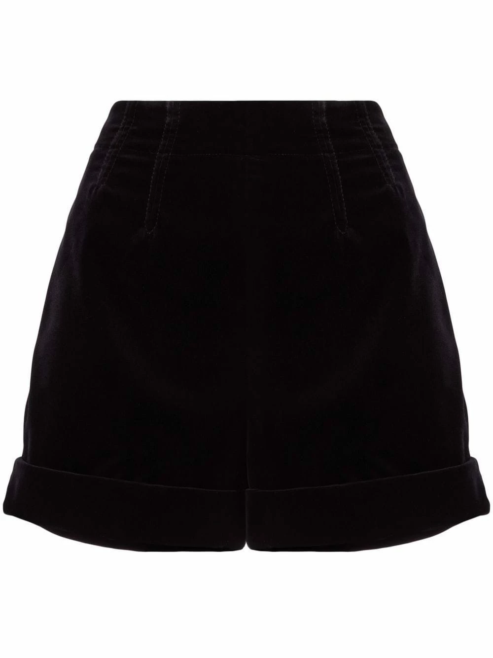 Ourlet retroussé, pinces, taille haute. Couleur : noir. Matière : coton.