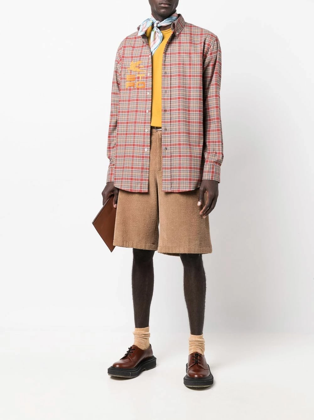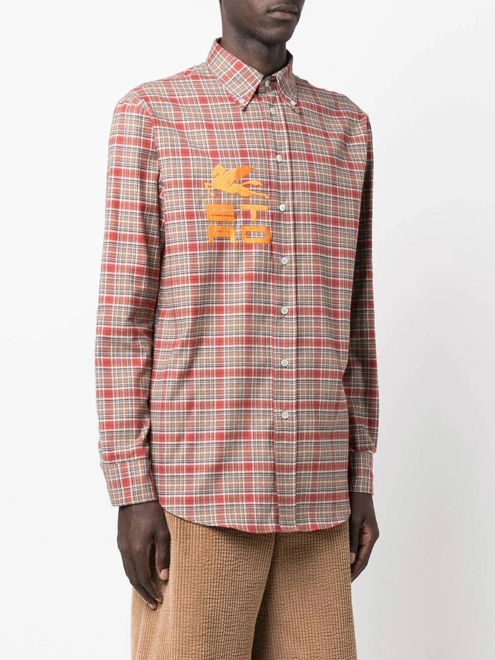 Logo imprimé à la poitrine, carreaux Plaid, col boutonné, boutonnière sur le devant, manches longues, poignets boutonnés, ourlet incurvé. Matière : coton.