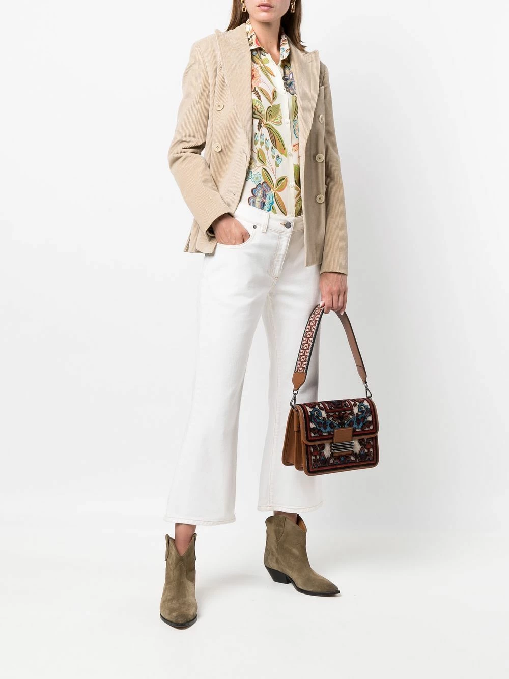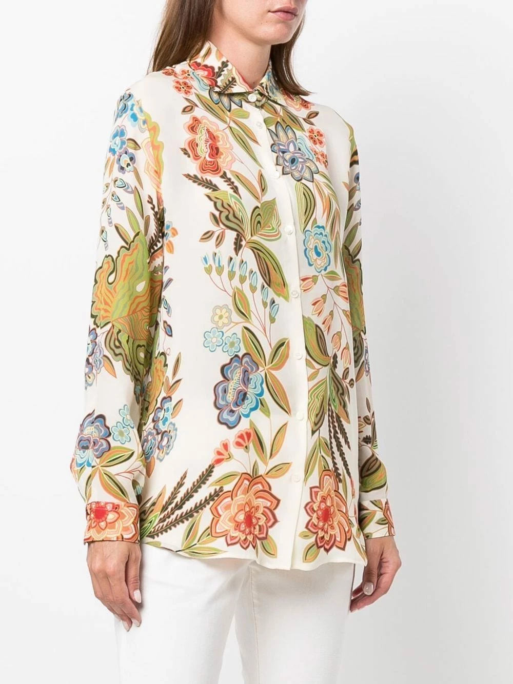 Motif de fleurs, col italien, boutonnière sur le devant, manches longues, poignets boutonnés, ourlet droit. Couleur : multicolore. Matière : soie.