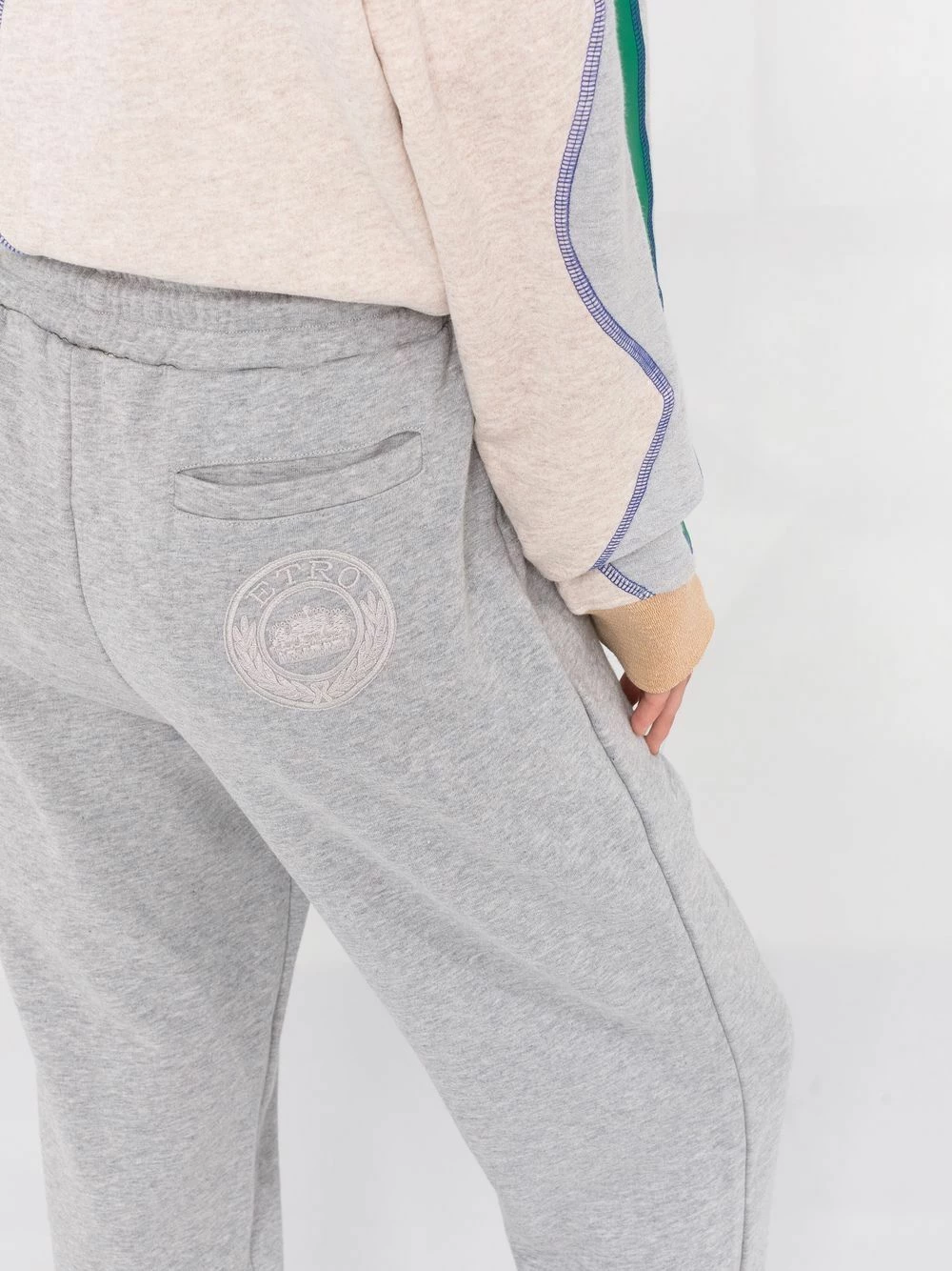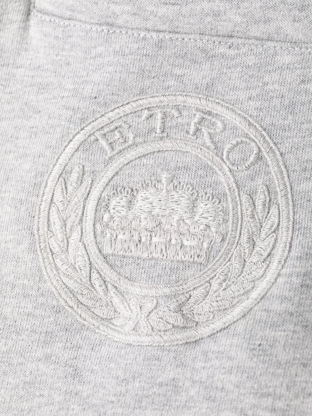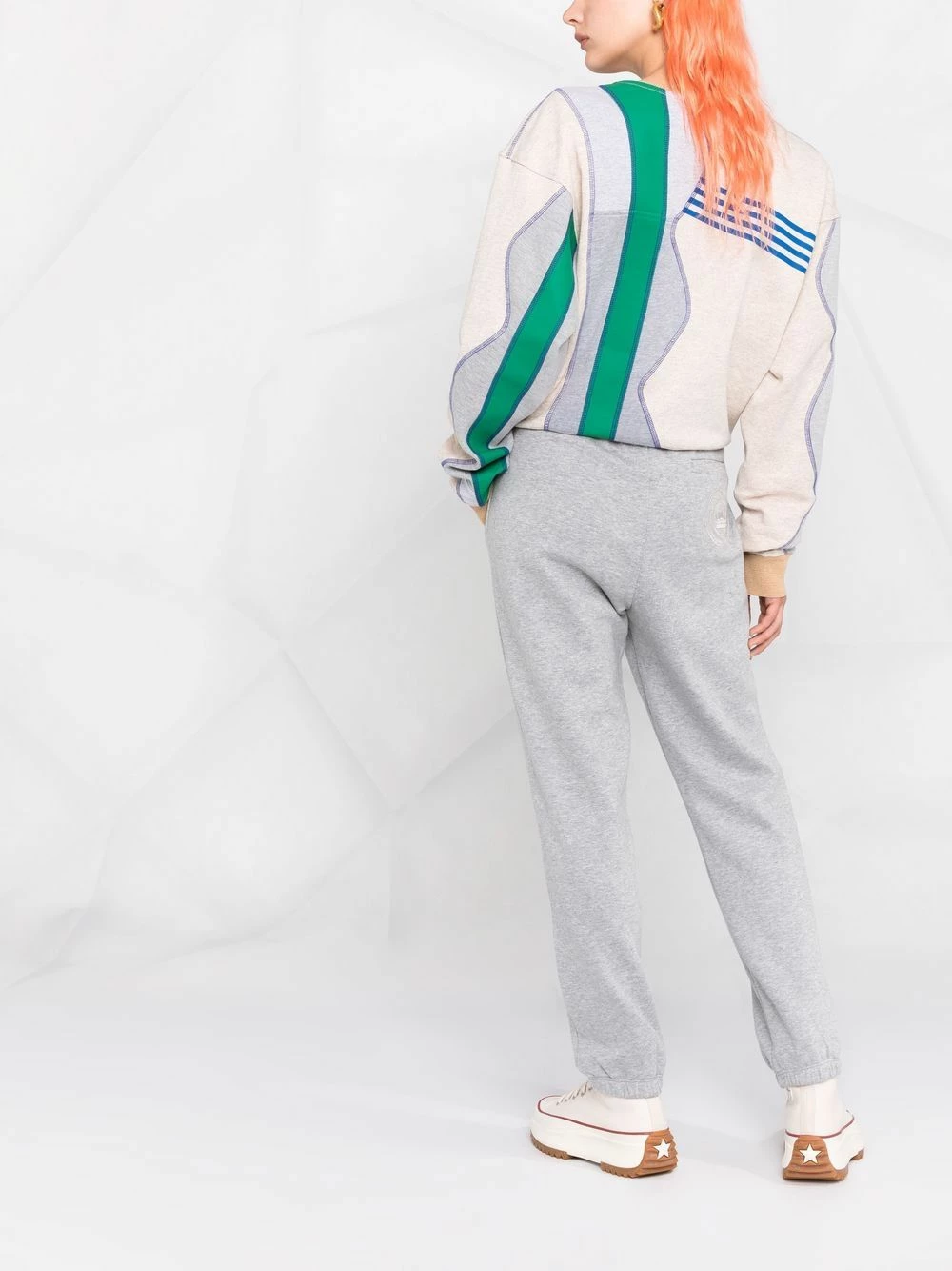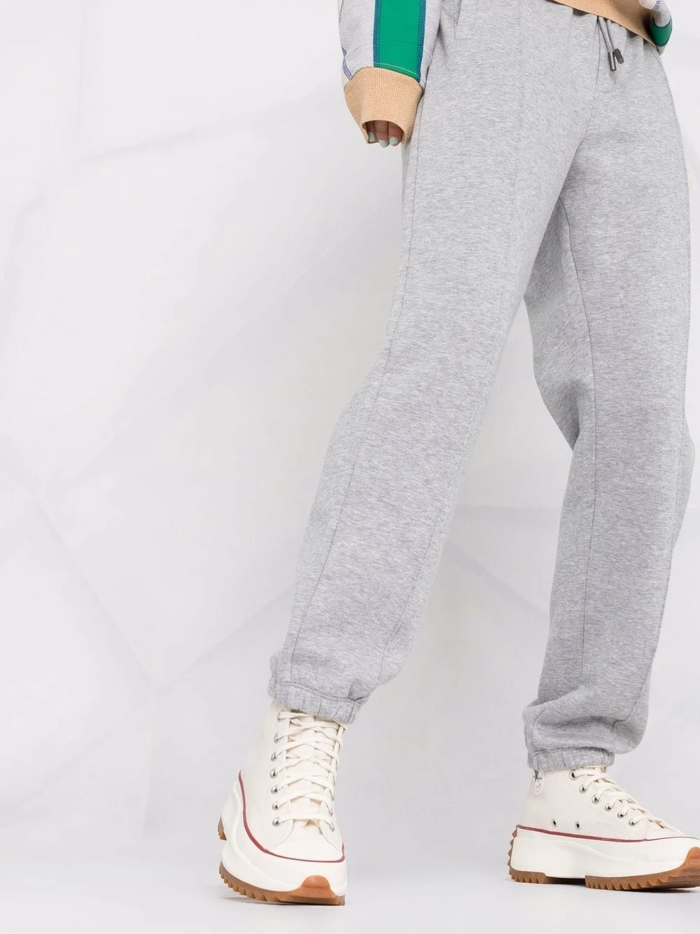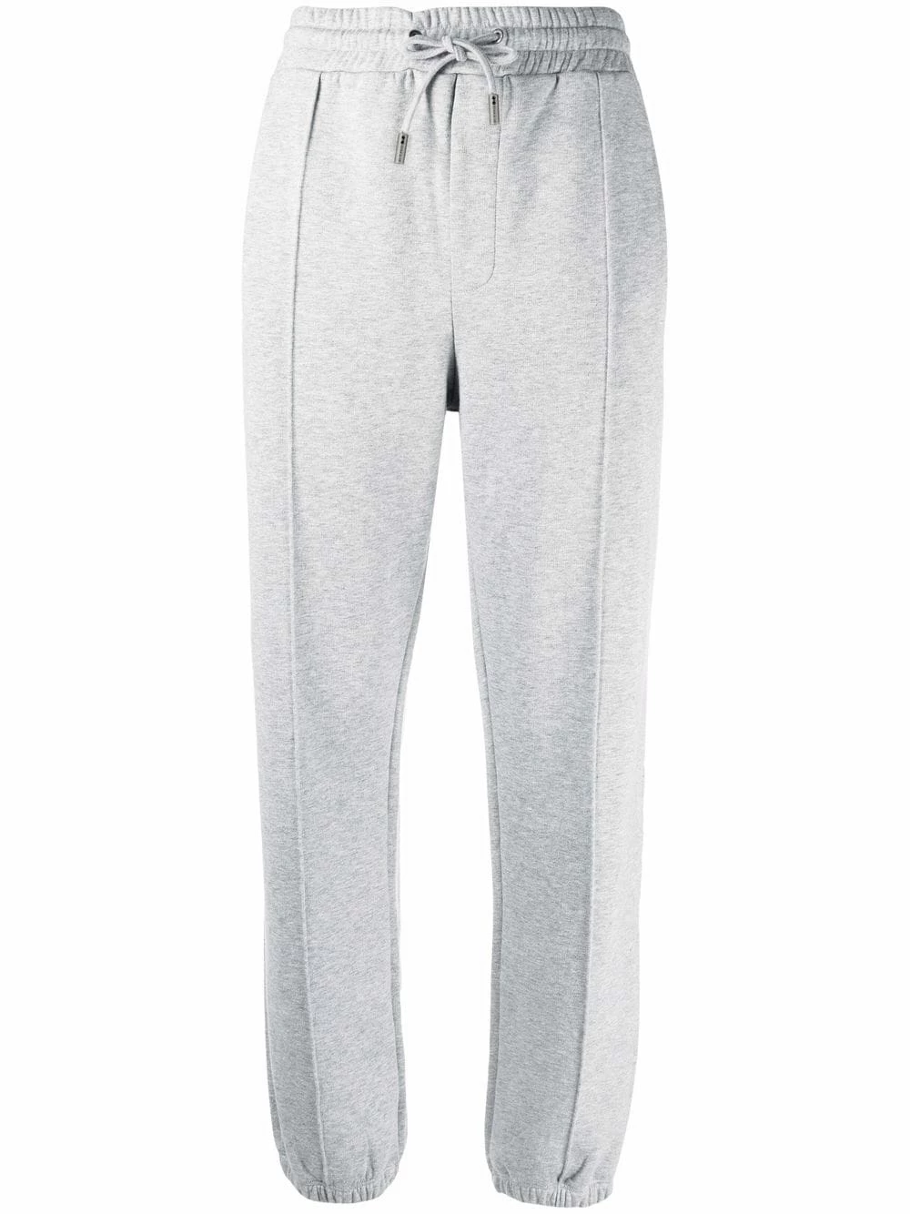 Détails de coutures apparentes, logo brodé à l’arrière, poches plaquées latérales, poche arrière plaquée, coupe droite, taille élastique à lien de resserrage. Couleur : gris. Matière : coton mélangé.