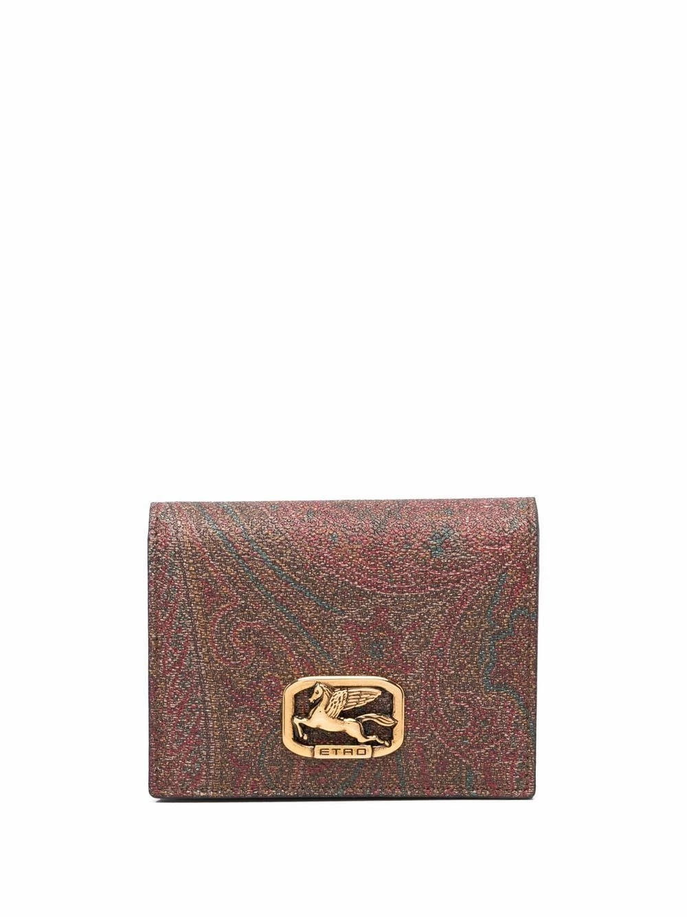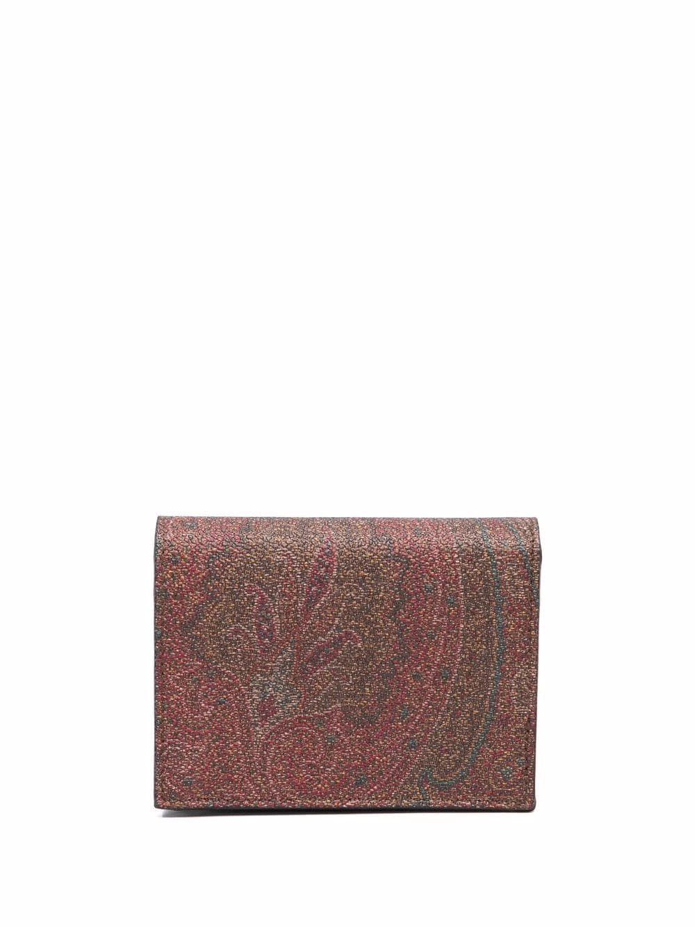 Motif cachemire, plaque logo dorée, dessus à rabat avec bouton pression, compartiments intérieurs pour carte, compartiment à billets. Couleur : multicolore. Matière : coton.