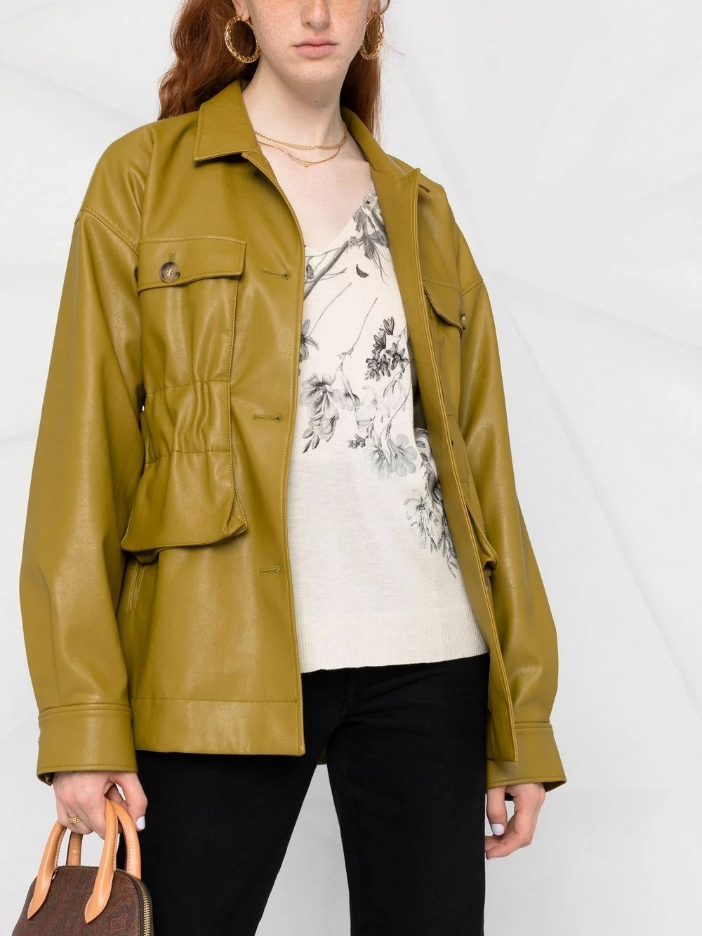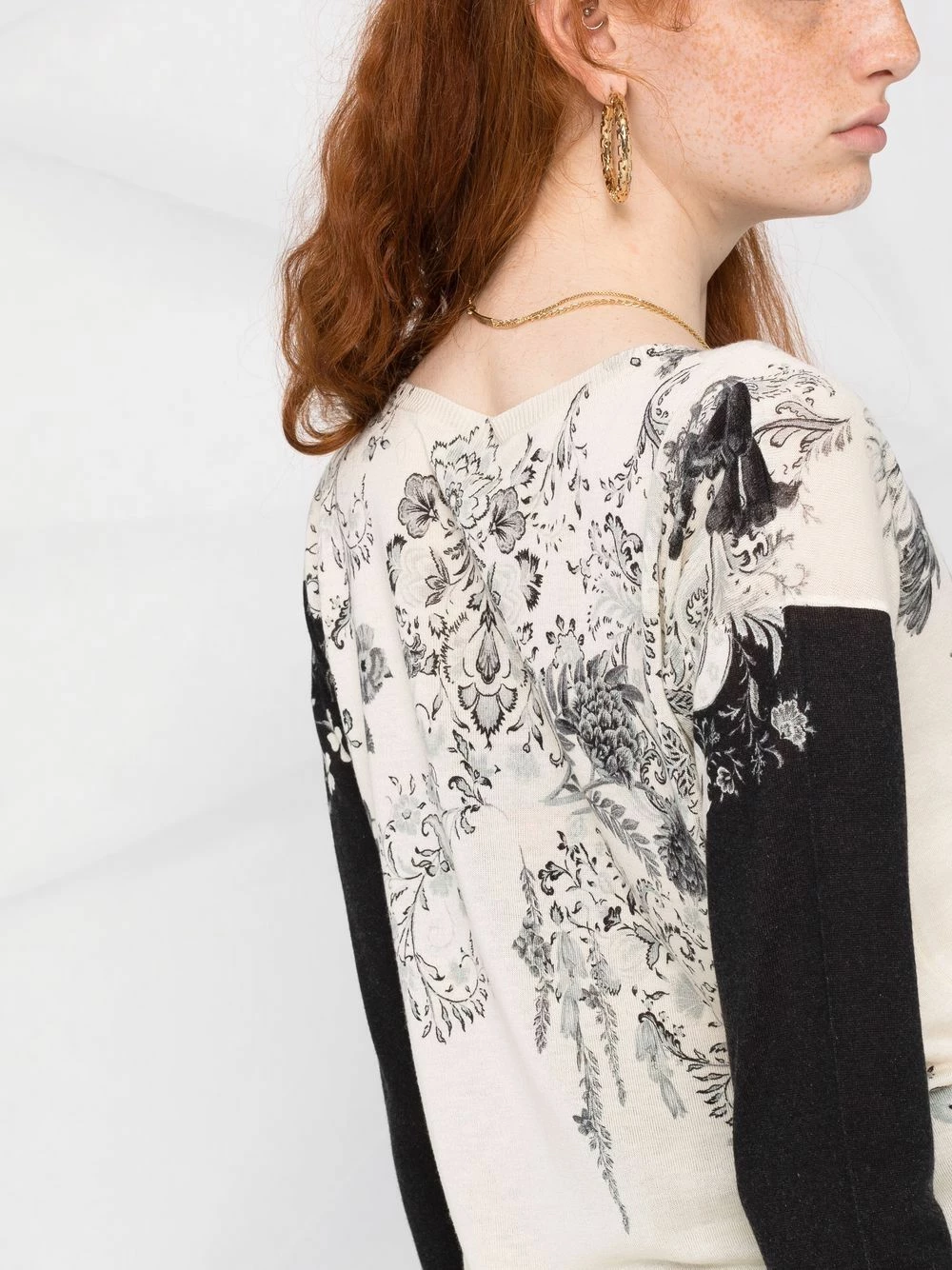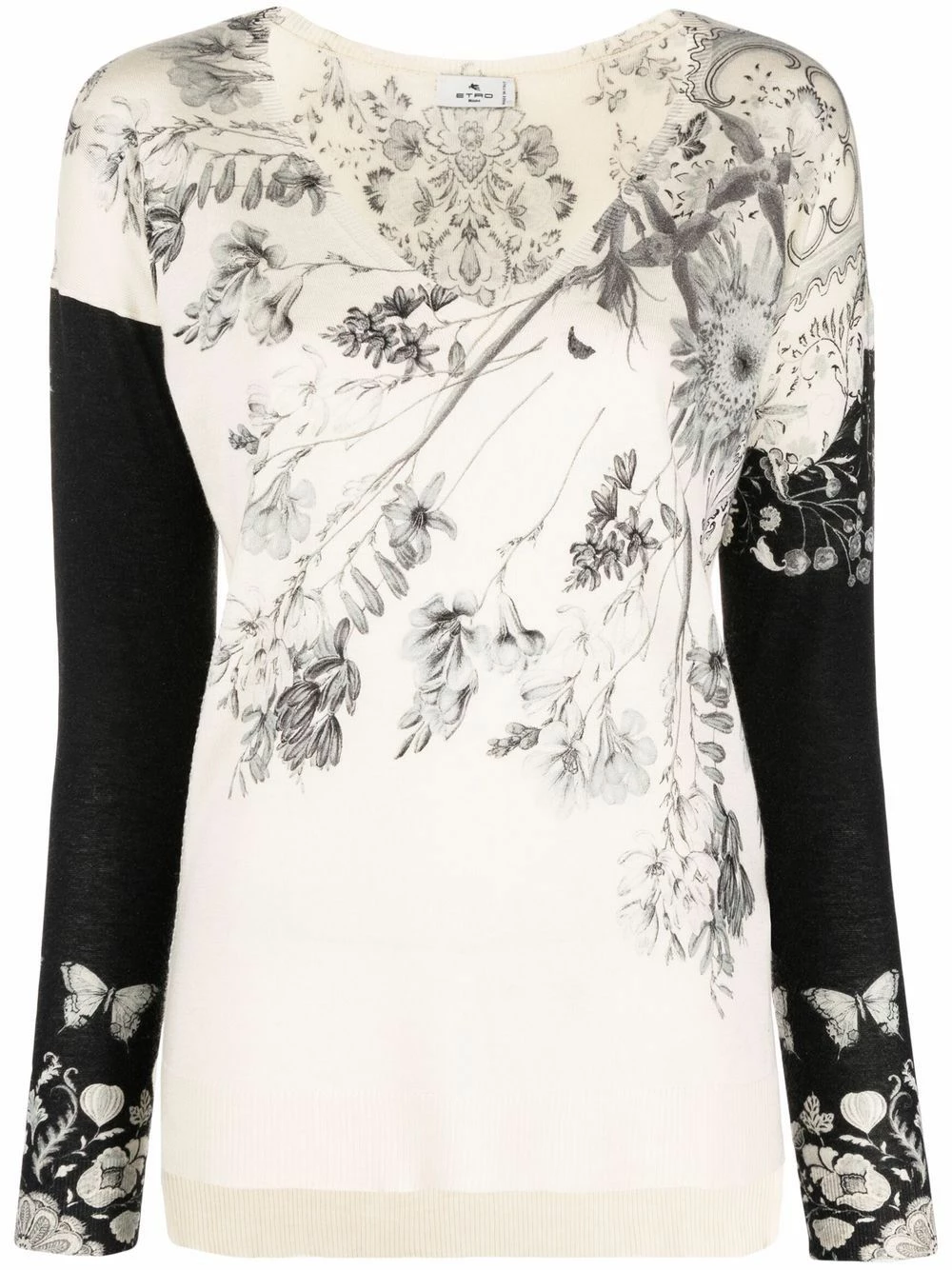 Imprimé à fleurs, maille fine, bord en maille côtelée, col v, manches longues, ourlet droit.