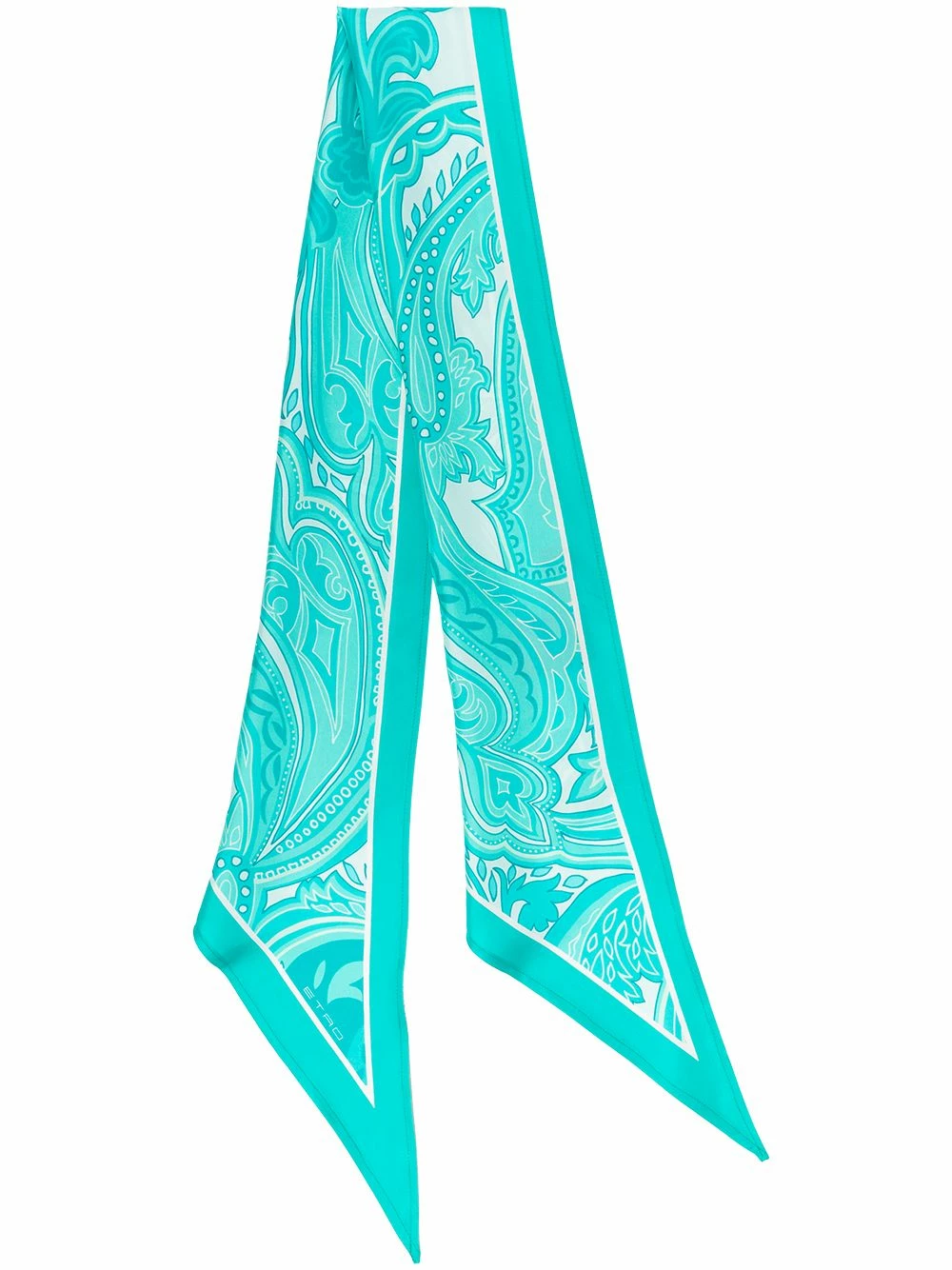 Motif cachemire, structure légère, bords finis, bout pointu. Couleur : vert. Matière : soie.