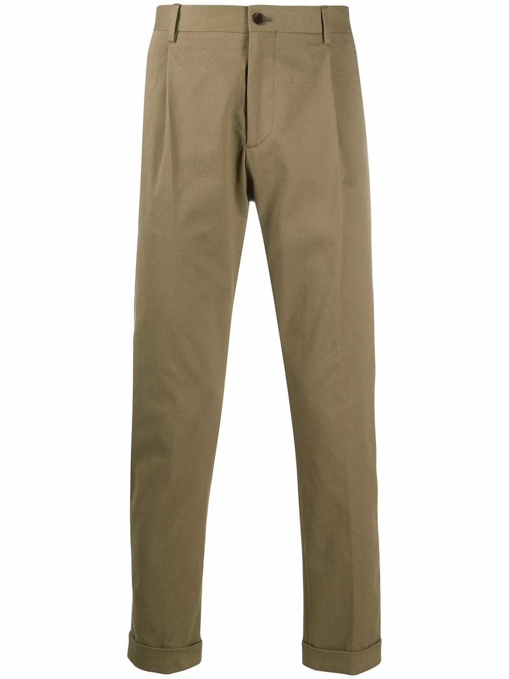 Passants de ceinture, poches à fermeture zippée devant, poche arrière boutonnée, coupe fuselée. Couleur : vert.