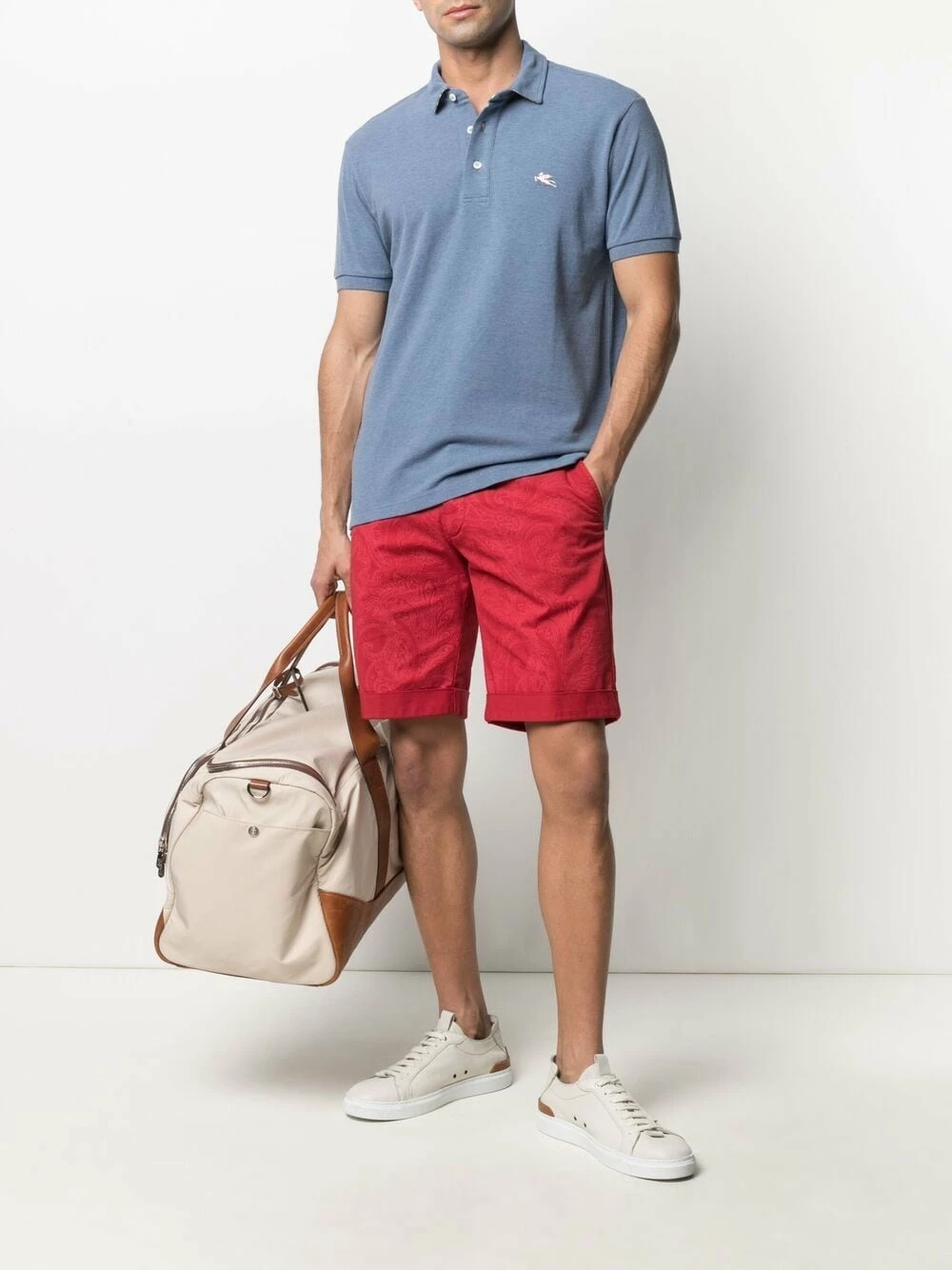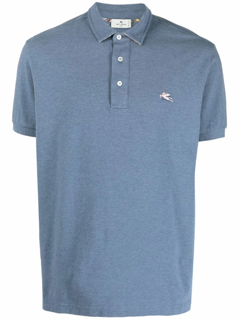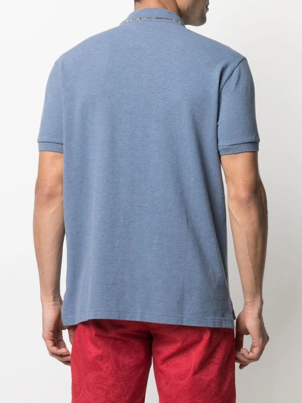 Logo brodé, col boutonné, manches courtes, ourlet droit. Couleur : bleu. Matière : coton.
